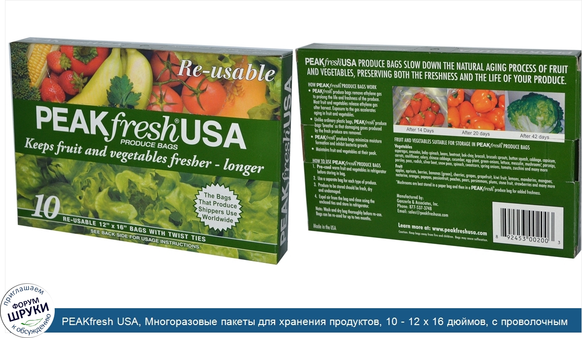 ru PEAKfresh USA, Многоразовые пакеты для хранения продуктов, 10 - 12 x 16 дюймов, с проволочным креплением