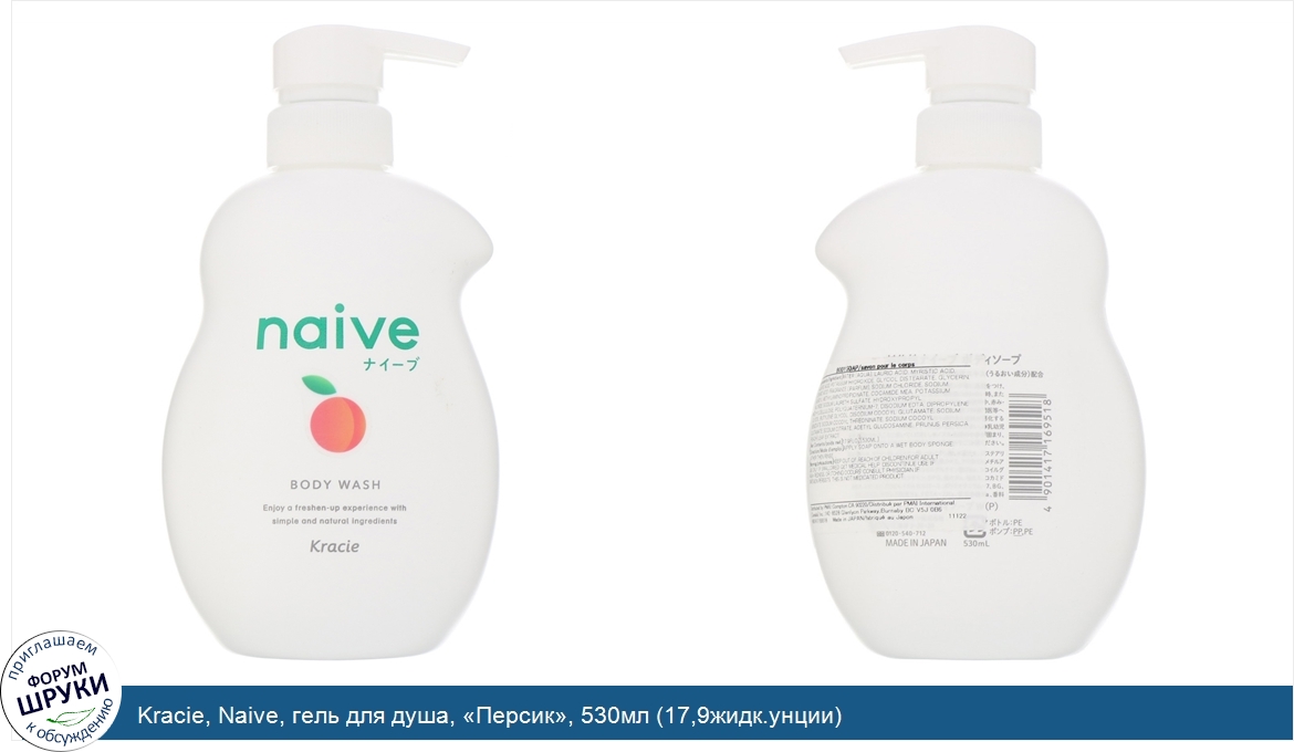Kracie, Naive, гель для душа, «Персик», 530мл (17,9жидк.унции)
