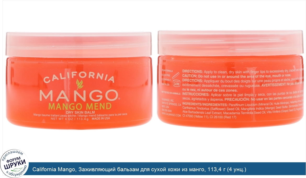 ru California Mango, Заживляющий бальзам для сухой кожи из манго, 113,4 г (4 унц.)