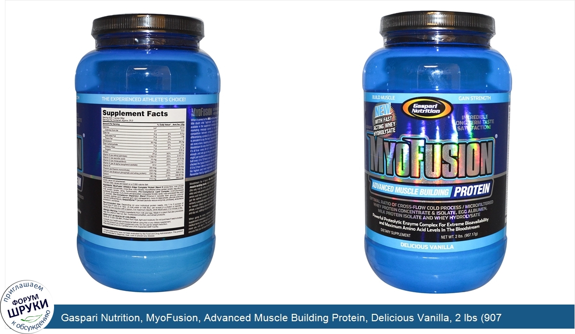 Gaspari Nutrition, MyoFusion, Advanced Muscle Building Protein, Delicious Vanilla, 2 lbs (907.17 g)