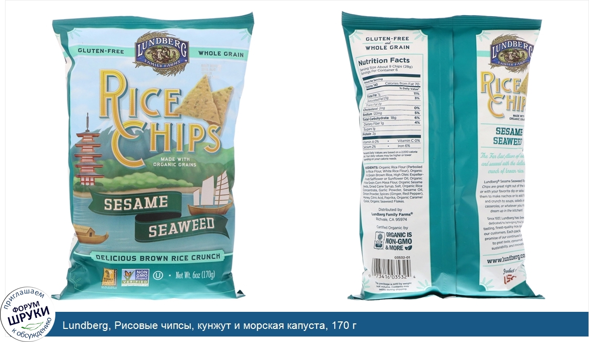Друзья, если у вас есть отзыв/дополнение/комментарий/вопрос относительно Lundberg, Рисовые чипсы, кунжут и морская капуста, 170 г - напишите его ответом в эту тему (это будет полезно всему сообществу в целом и вам в отдельности).