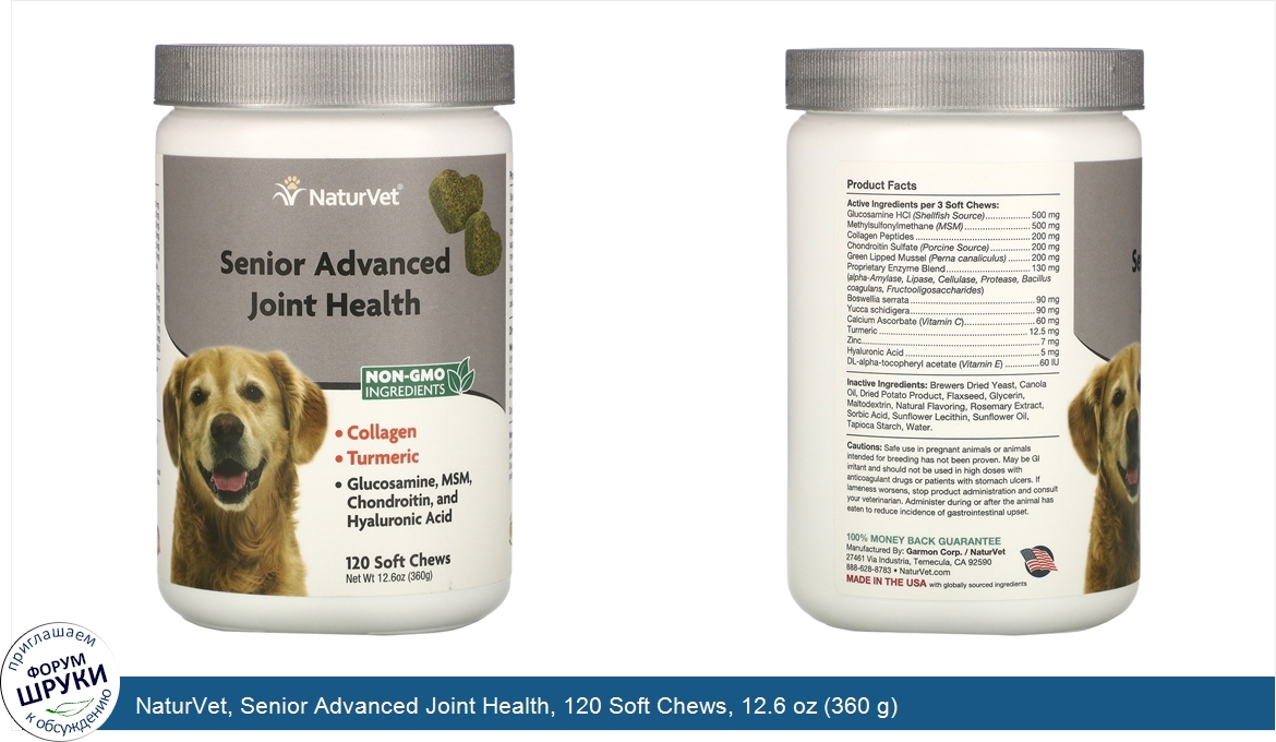 Друзья, если у вас есть отзыв/дополнение/комментарий/вопрос относительно NaturVet, Senior Advanced Joint Health, 120 Soft Chews, 12.6 oz (360 g) - напишите его ответом в эту тему (это будет полезно всему сообществу в целом и вам в отдельности).