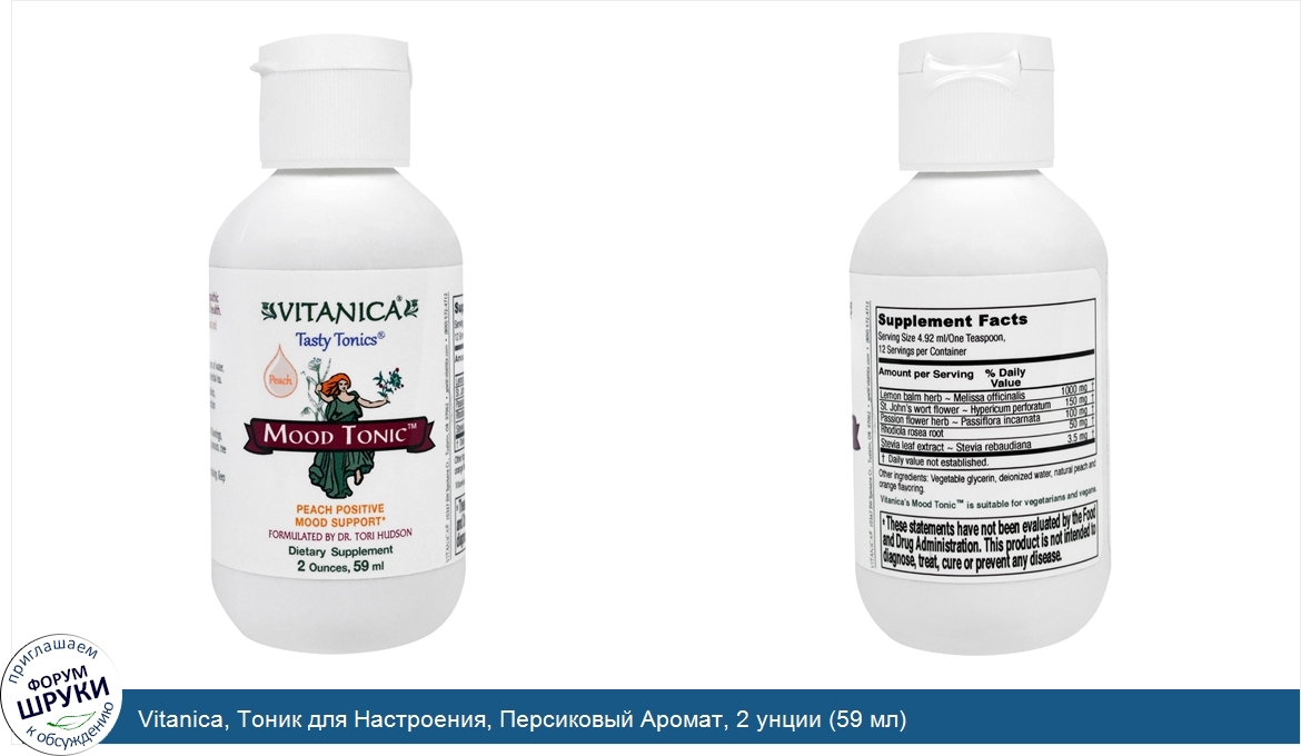 Друзья, если у вас есть отзыв/дополнение/комментарий/вопрос относительно Vitanica, Тоник для Настроения, Персиковый Аромат, 2 унции (59 мл) - напишите его ответом в эту тему (это будет полезно всему сообществу в целом и вам в отдельности).