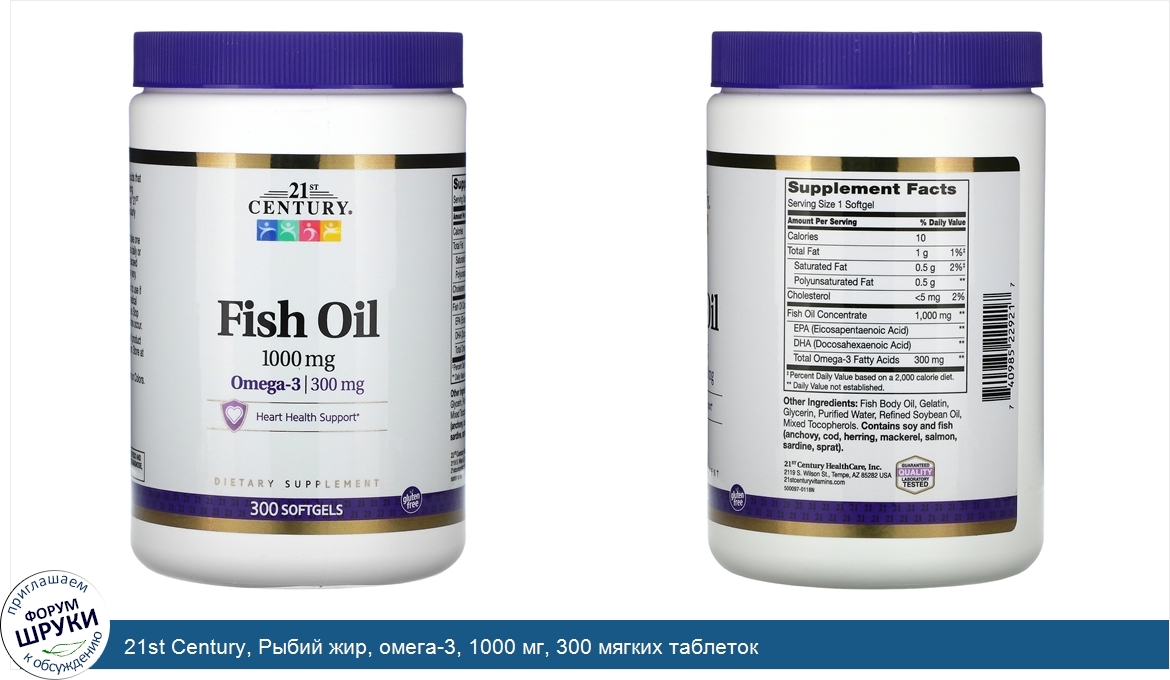Друзья, если у вас есть отзыв/дополнение/комментарий/вопрос относительно 21st Century, Рыбий жир, омега-3, 1000 мг, 300 мягких таблеток - напишите его ответом в эту тему (это будет полезно всему сообществу в целом и вам в отдельности).