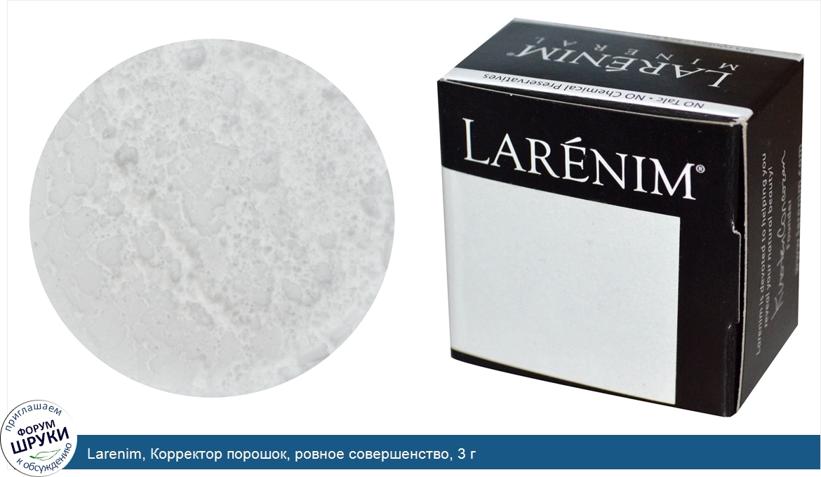 Друзья, если у вас есть отзыв/дополнение/комментарий/вопрос относительно Larenim, Корректор порошок, ровное совершенство, 3 г - напишите его ответом в эту тему (это будет полезно всему сообществу в целом и вам в отдельности).