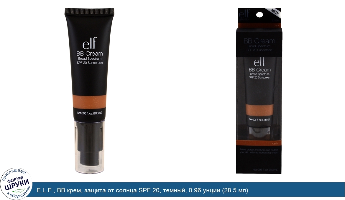 ru E.L.F., BB крем, защита от солнца SPF 20, темный, 0.96 унции (28.5 мл)