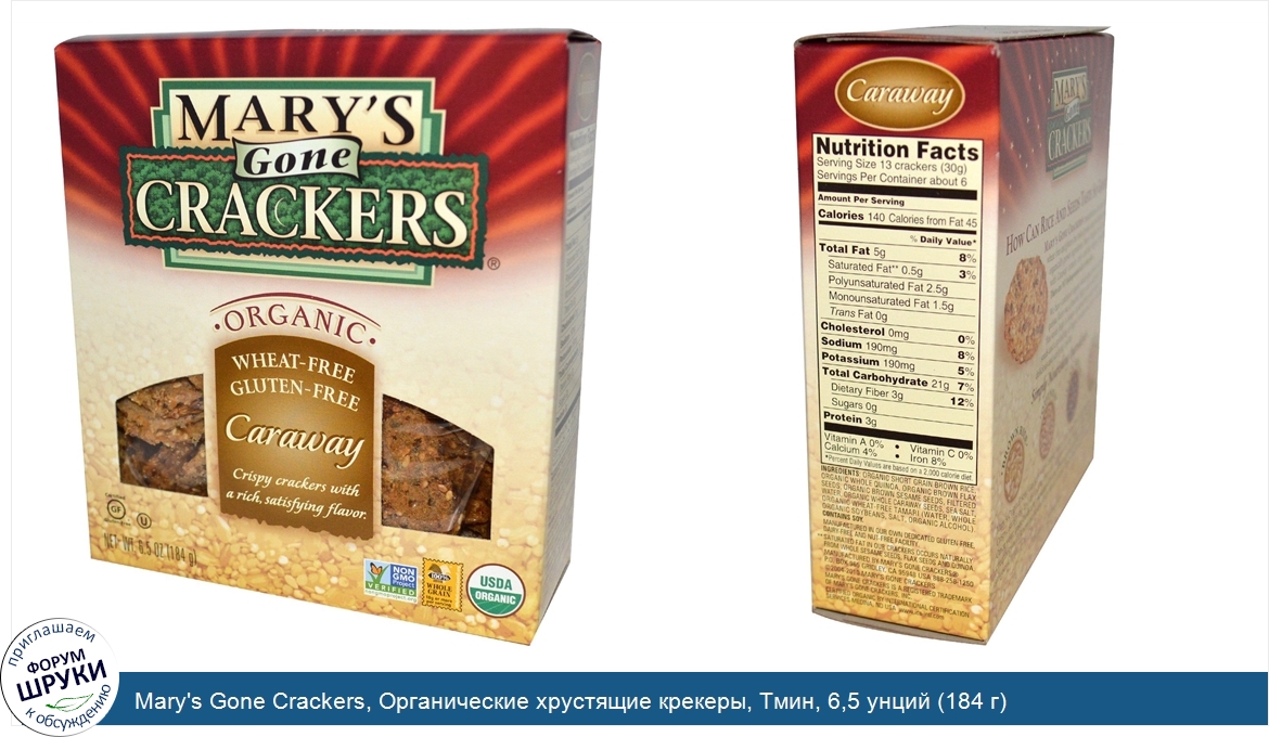 Друзья, если у вас есть отзыв/дополнение/комментарий/вопрос относительно Mary's Gone Crackers, Органические хрустящие крекеры, Тмин, 6,5 унций (184 г) - напишите его ответом в эту тему (это будет полезно всему сообществу в целом и вам в отдельности).