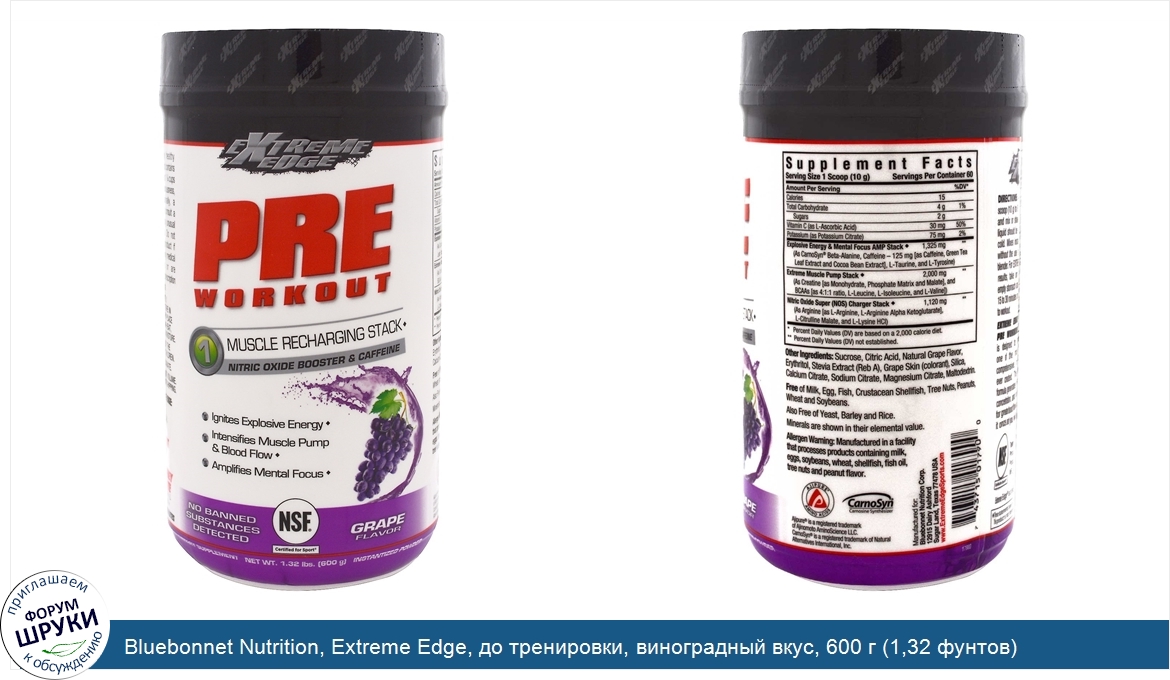 Bluebonnet Nutrition, Extreme Edge, до тренировки, виноградный вкус, 600 г (1,32 фунтов)
