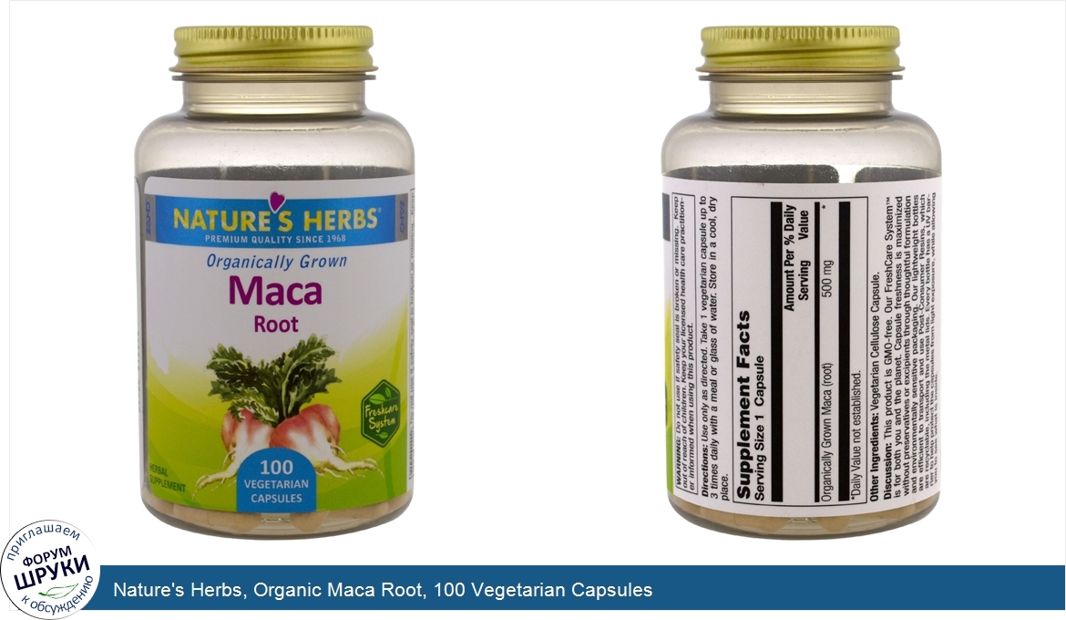 Друзья, если у вас есть отзыв/дополнение/комментарий/вопрос относительно Nature's Herbs, Organic Maca Root, 100 Vegetarian Capsules - напишите его ответом в эту тему (это будет полезно всему сообществу в целом и вам в отдельности).