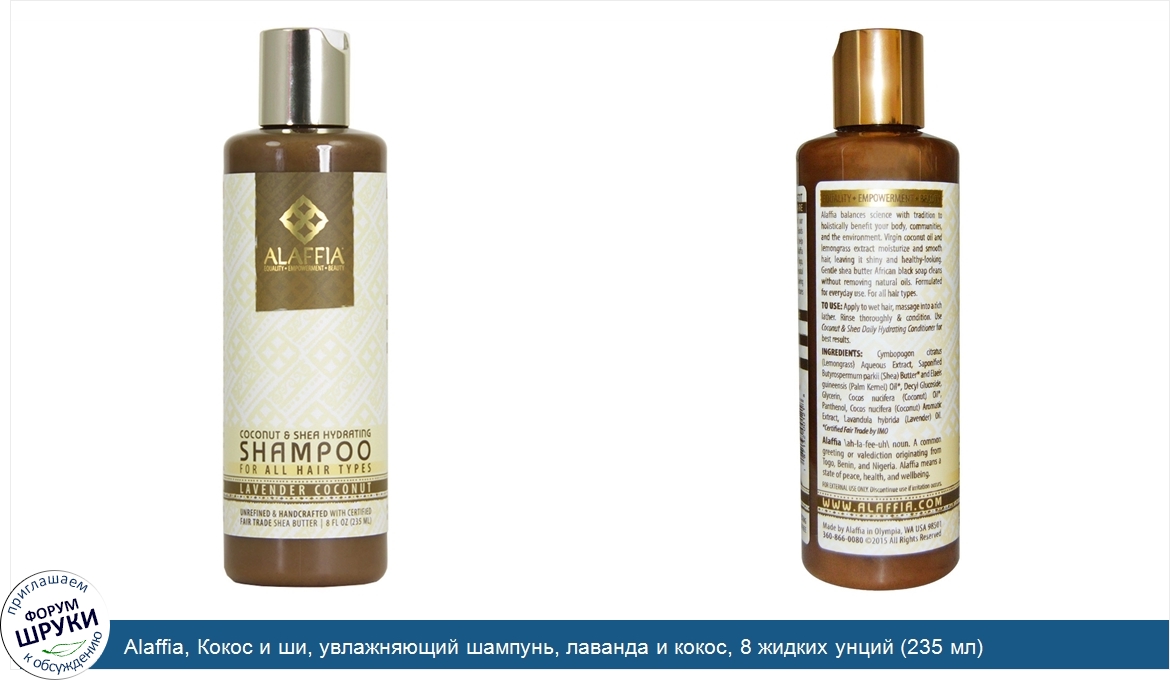 ru Alaffia, Кокос и ши, увлажняющий шампунь, лаванда и кокос, 8 жидких унций (235 мл)