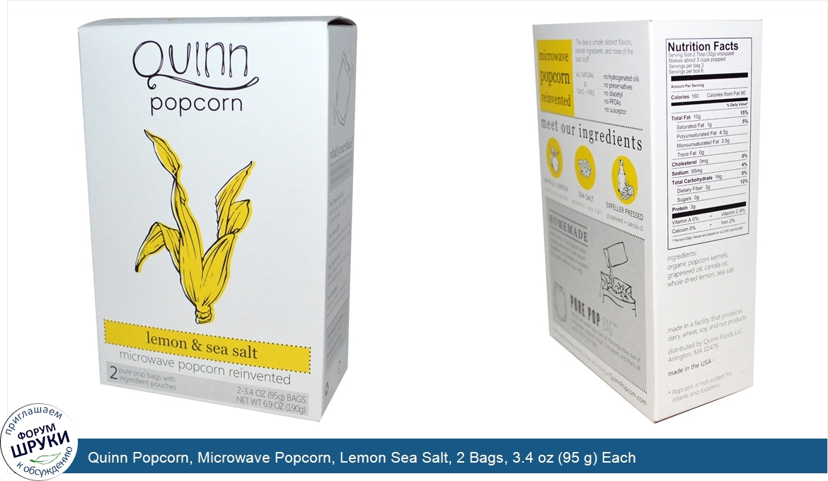 Друзья, если у вас есть отзыв/дополнение/комментарий/вопрос относительно Quinn Popcorn, Microwave Popcorn, Lemon Sea Salt, 2 Bags, 3.4 oz (95 g) Each - напишите его ответом в эту тему (это будет полезно всему сообществу в целом и вам в отдельности).