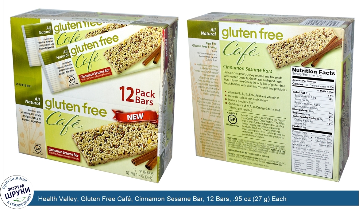 Друзья, если у вас есть отзыв/дополнение/комментарий/вопрос относительно Health Valley, Gluten Free Café, Cinnamon Sesame Bar, 12 Bars, .95 oz (27 g) Each - напишите его ответом в эту тему (это будет полезно всему сообществу в целом и вам в отдельности).