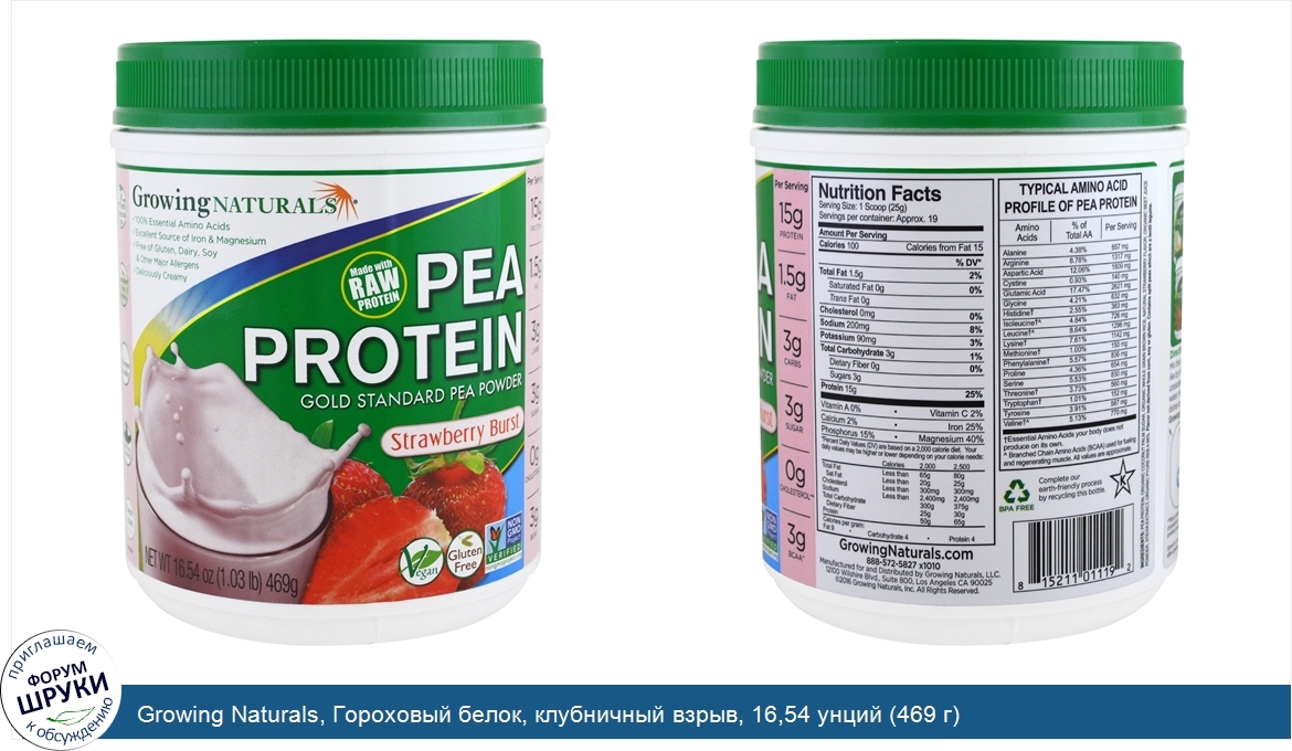 Друзья, если у вас есть отзыв/дополнение/комментарий/вопрос относительно Growing Naturals, Гороховый белок, клубничный взрыв, 16,54 унций (469 г) - напишите его ответом в эту тему (это будет полезно всему сообществу в целом и вам в отдельности).