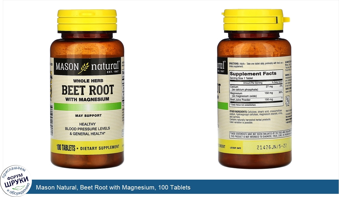 Друзья, если у вас есть отзыв/дополнение/комментарий/вопрос относительно Mason Natural, Beet Root with Magnesium, 100 Tablets - напишите его ответом в эту тему (это будет полезно всему сообществу в целом и вам в отдельности).