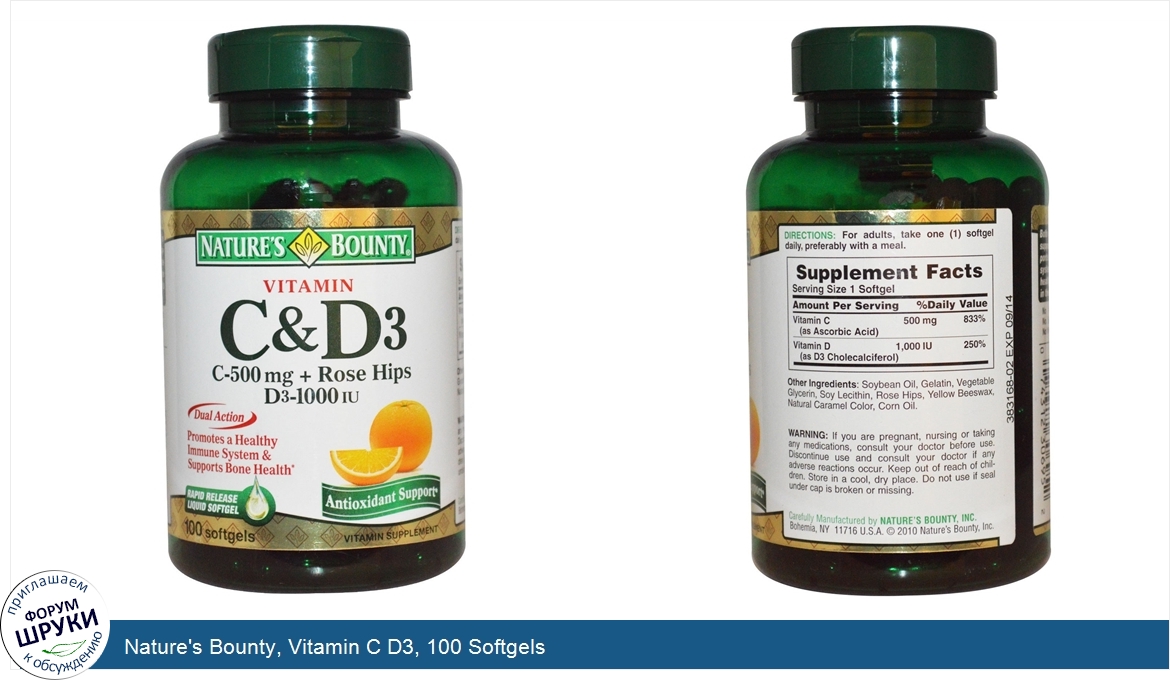 Друзья, если у вас есть отзыв/дополнение/комментарий/вопрос относительно Nature's Bounty, Vitamin C D3, 100 Softgels - напишите его ответом в эту тему (это будет полезно всему сообществу в целом и вам в отдельности).