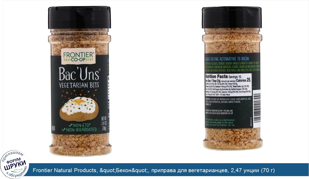Друзья, если у вас есть отзыв/дополнение/комментарий/вопрос относительно Frontier Natural Products, "Бекон", приправа для вегетарианцев, 2,47 унции (70 г) - напишите его ответом в эту тему (это будет полезно всему сообществу в целом и вам в отдельности).