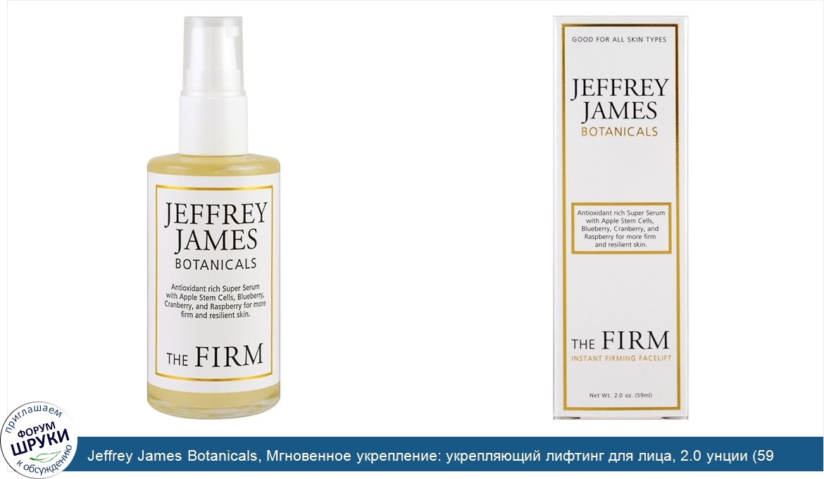 Друзья, если у вас есть отзыв/дополнение/комментарий/вопрос относительно Jeffrey James Botanicals, Мгновенное укрепление: укрепляющий лифтинг для лица, 2.0 унции (59 мл) - напишите его ответом в эту тему (это будет полезно всему сообществу в целом и вам в отдельности).