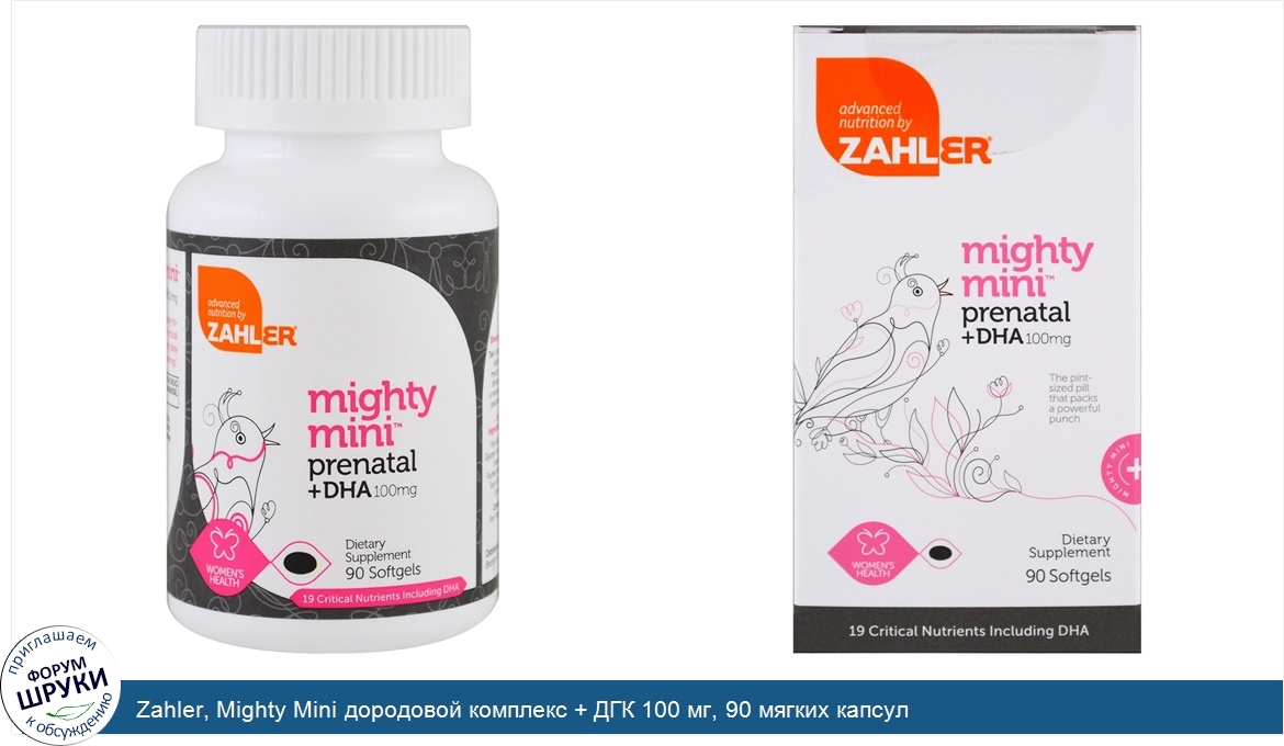 ru Zahler, Mighty Mini дородовой комплекс + ДГК 100 мг, 90 мягких капсул