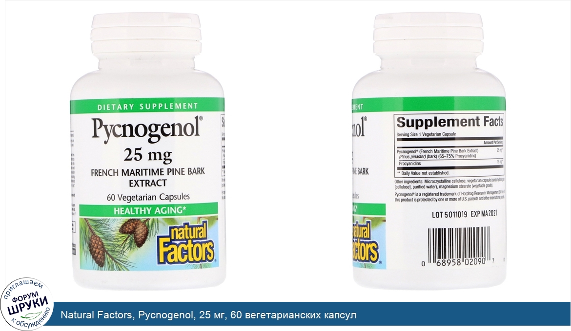 Natural Factors, Pycnogenol, 25 мг, 60 вегетарианских капсул