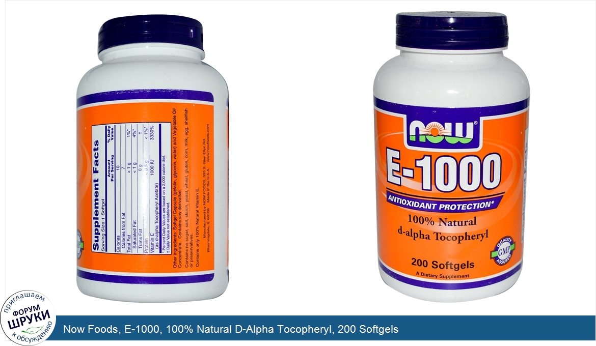 Друзья, если у вас есть отзыв/дополнение/комментарий/вопрос относительно Now Foods, E-1000, 100% Natural D-Alpha Tocopheryl, 200 Softgels - напишите его ответом в эту тему (это будет полезно всему сообществу в целом и вам в отдельности).
