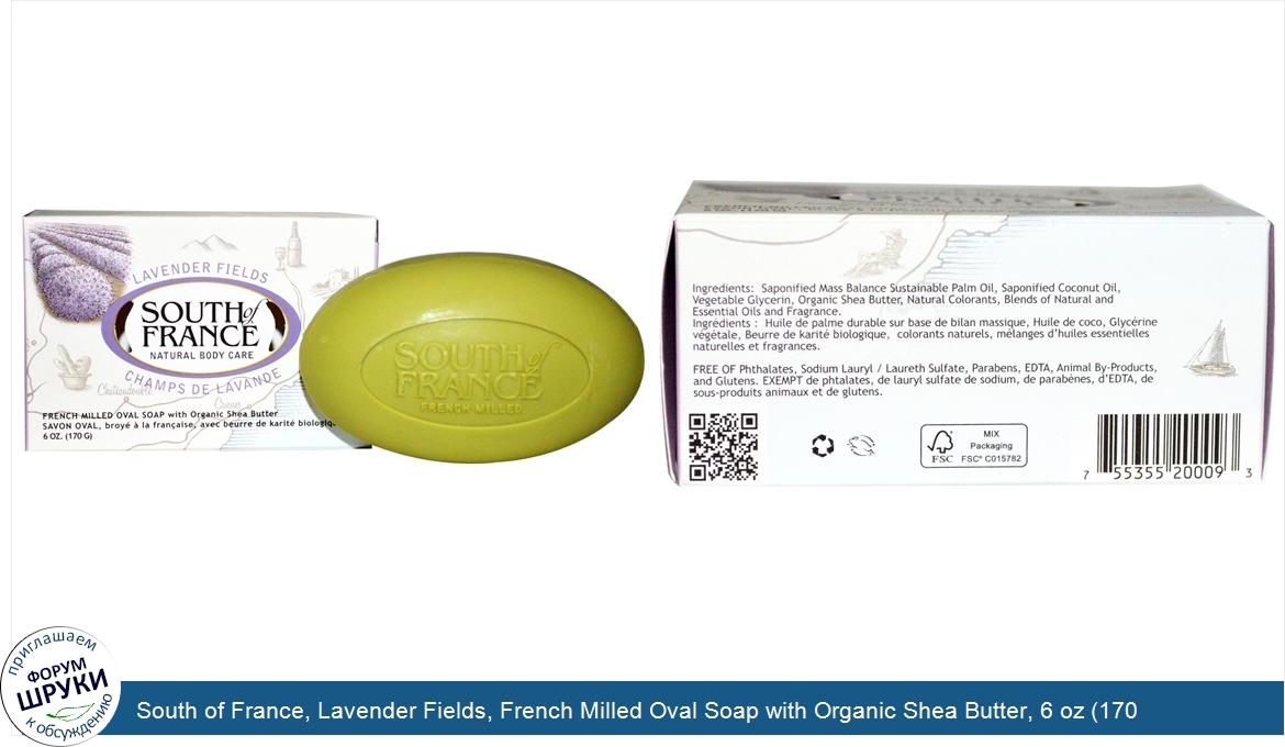Друзья, если у вас есть отзыв/дополнение/комментарий/вопрос относительно South of France, Lavender Fields, French Milled Oval Soap with Organic Shea Butter, 6 oz (170 g) - напишите его ответом в эту тему (это будет полезно всему сообществу в целом и вам в отдельности).