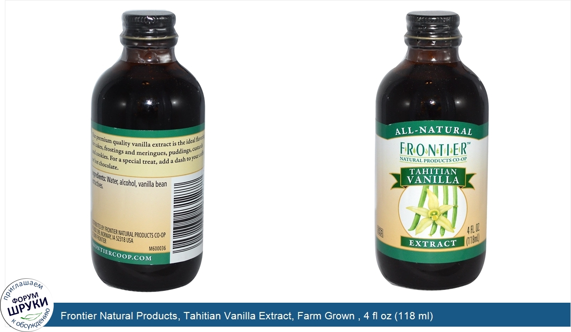 Друзья, если у вас есть отзыв/дополнение/комментарий/вопрос относительно Frontier Natural Products, Tahitian Vanilla Extract, Farm Grown , 4 fl oz (118 ml) - напишите его ответом в эту тему (это будет полезно всему сообществу в целом и вам в отдельности).