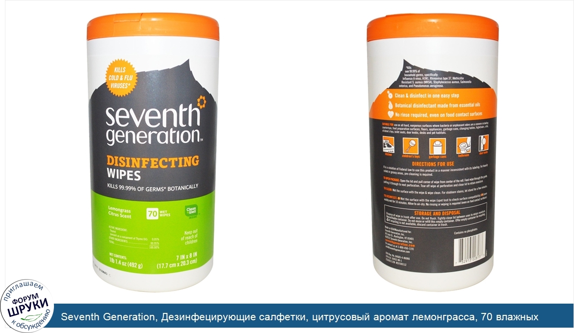 Друзья, если у вас есть отзыв/дополнение/комментарий/вопрос относительно Seventh Generation, Дезинфецирующие салфетки, цитрусовый аромат лемонграсса, 70 влажных салфеток, 1 фунт 1,4 унций (492 г) - напишите его ответом в эту тему (это будет полезно всему сообществу в целом и вам в отдельности).