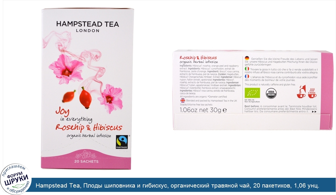 Друзья, если у вас есть отзыв/дополнение/комментарий/вопрос относительно Hampstead Tea, Плоды шиповника и гибискус, органический травяной чай, 20 пакетиков, 1,06 унц. (30 г) - напишите его ответом в эту тему (это будет полезно всему сообществу в целом и вам в отдельности).