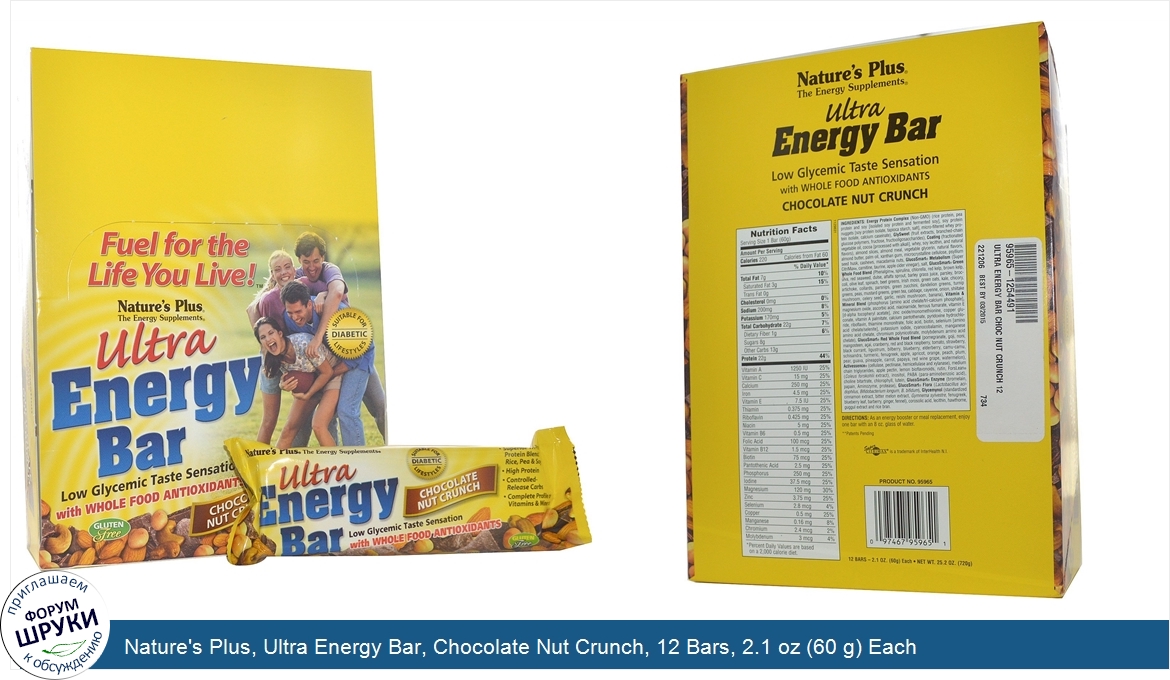 Друзья, если у вас есть отзыв/дополнение/комментарий/вопрос относительно Nature's Plus, Ultra Energy Bar, Chocolate Nut Crunch, 12 Bars, 2.1 oz (60 g) Each - напишите его ответом в эту тему (это будет полезно всему сообществу в целом и вам в отдельности).