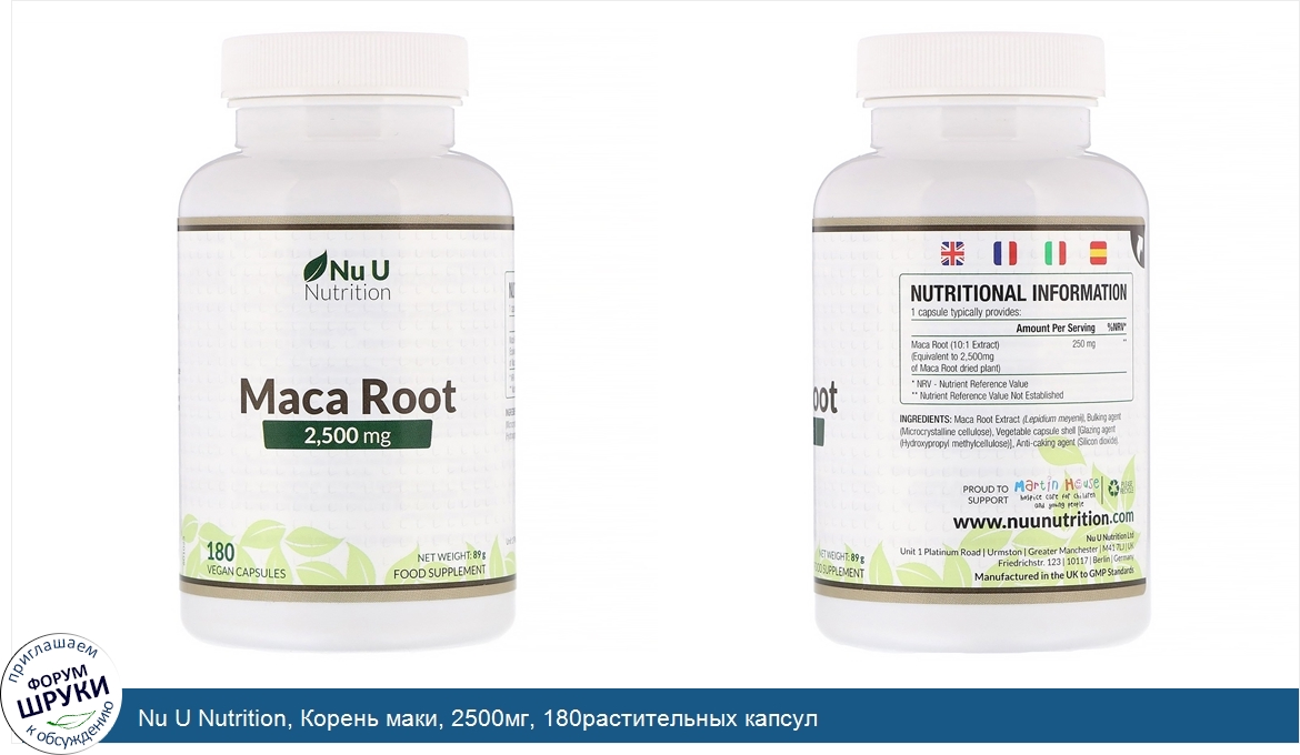 Друзья, если у вас есть отзыв/дополнение/комментарий/вопрос относительно Nu U Nutrition, Корень маки, 2500мг, 180растительных капсул - напишите его ответом в эту тему (это будет полезно всему сообществу в целом и вам в отдельности).