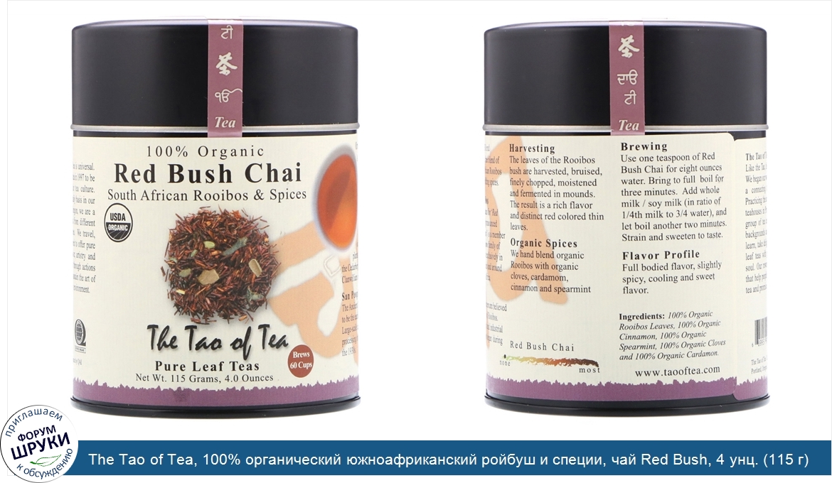 The Tao of Tea, 100% органический южноафриканский ройбуш и специи, чай Red Bush, 4 унц. (115 г)