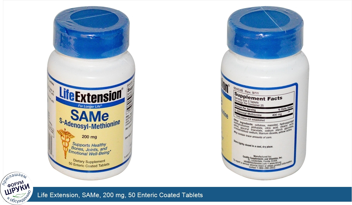 Друзья, если у вас есть отзыв/дополнение/комментарий/вопрос относительно Life Extension, SAMe, 200 mg, 50 Enteric Coated Tablets - напишите его ответом в эту тему (это будет полезно всему сообществу в целом и вам в отдельности).