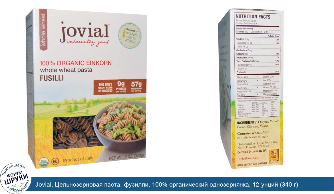 Друзья, если у вас есть отзыв/дополнение/комментарий/вопрос относительно Jovial, Цельнозерновая паста, фузилли, 100% органический однозернянка, 12 унций (340 г) - напишите его ответом в эту тему (это будет полезно всему сообществу в целом и вам в отдельности).