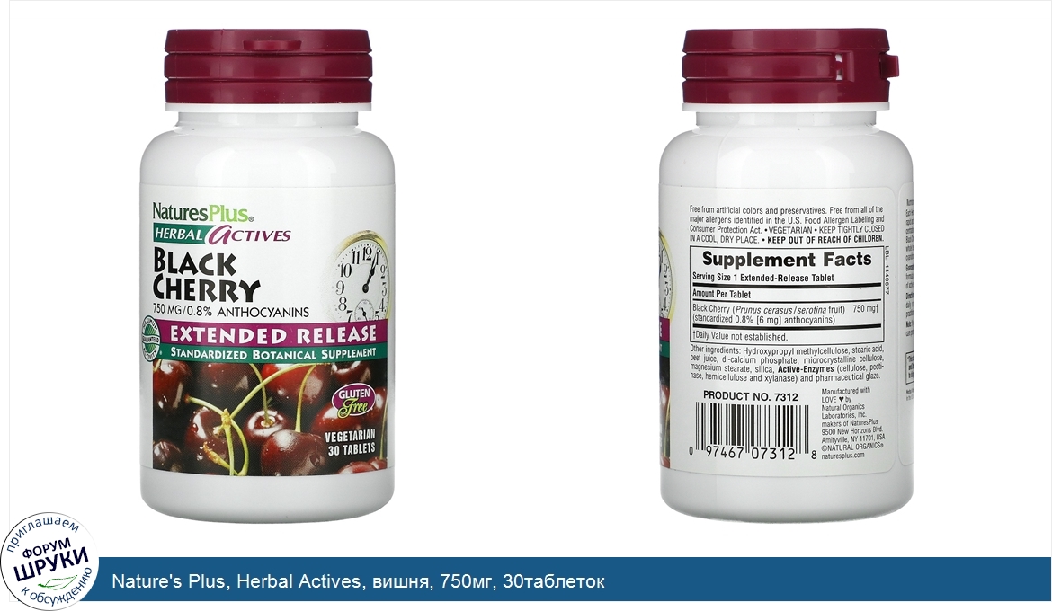 Друзья, если у вас есть отзыв/дополнение/комментарий/вопрос относительно Nature's Plus, Herbal Actives, вишня, 750мг, 30таблеток - напишите его ответом в эту тему (это будет полезно всему сообществу в целом и вам в отдельности).