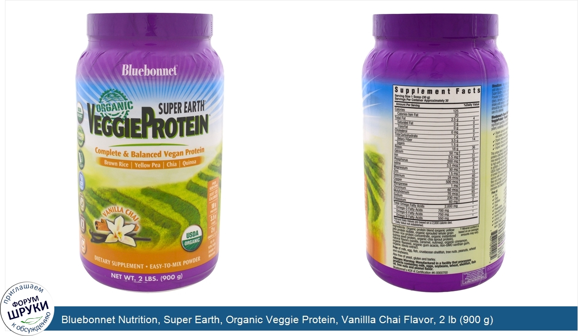 ru Bluebonnet Nutrition, Super Earth, Organic Veggie Protein, Vanillla Chai Flavor, 2 lb (900 g)