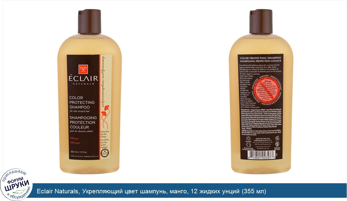 Eclair Naturals, Укрепляющий цвет шампунь, манго, 12 жидких унций (355 мл)
