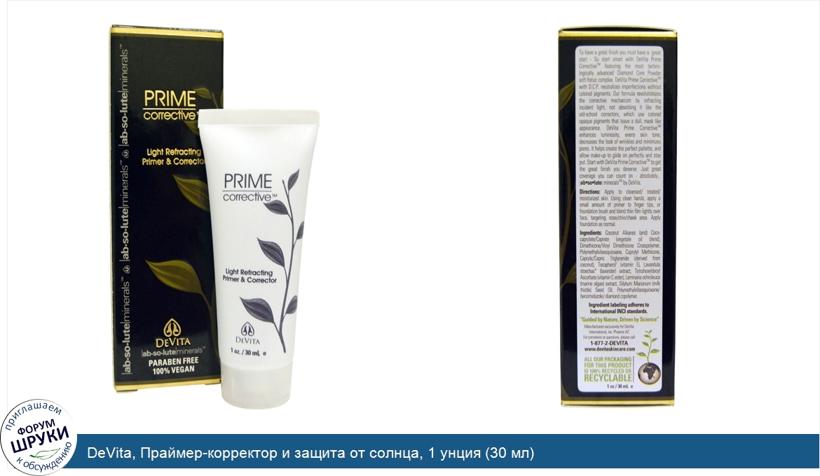 DeVita, Праймер-корректор и защита от солнца, 1 унция (30 мл)