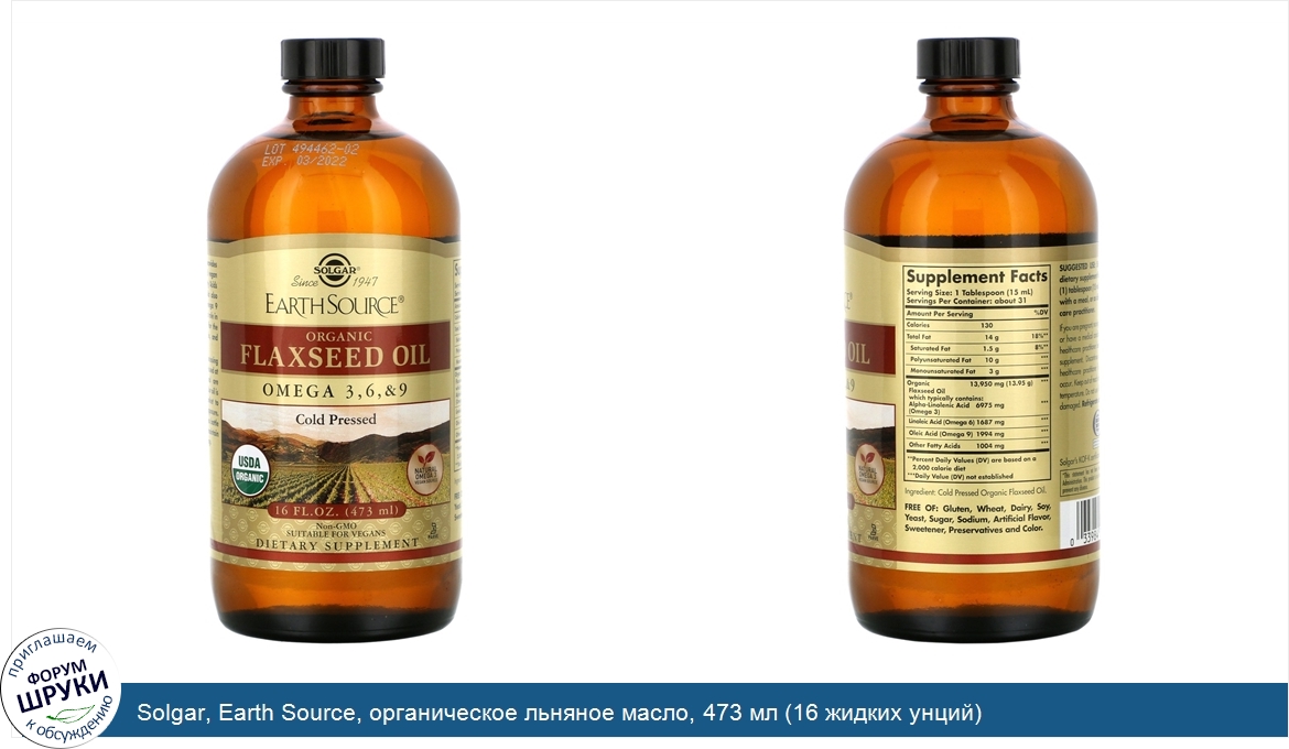 Друзья, если у вас есть отзыв/дополнение/комментарий/вопрос относительно Solgar, Earth Source, органическое льняное масло, 473 мл (16 жидких унций) - напишите его ответом в эту тему (это будет полезно всему сообществу в целом и вам в отдельности).