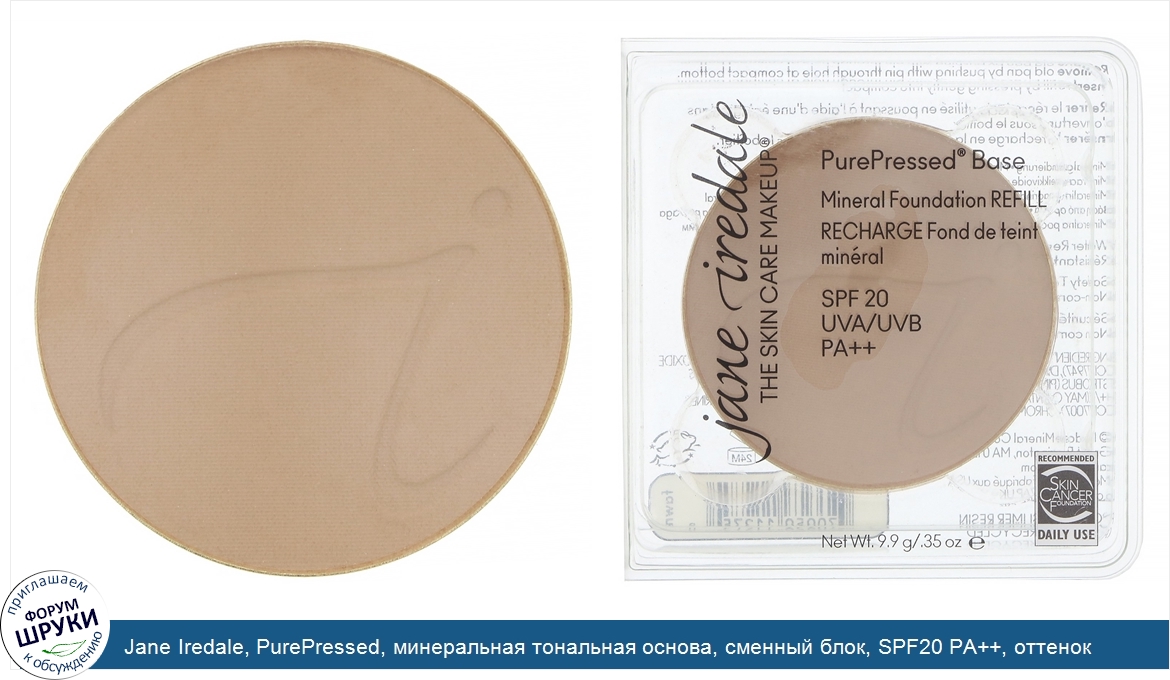Jane Iredale, PurePressed, минеральная тональная основа, сменный блок, SPF20 PA++, оттенок «фавн», 9,9г (0,35унции)