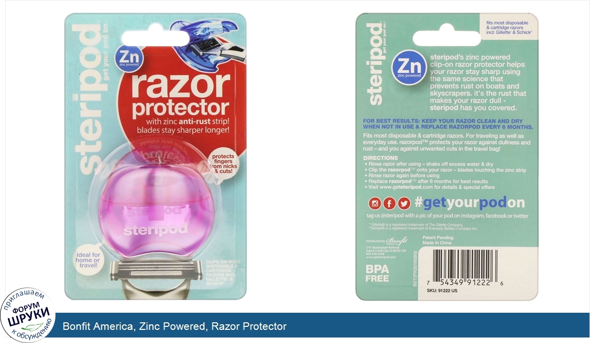 [DESCRIPT]Get Your Pod On. Zinc Powered. With Zinc Anti-Rust Strip! . Blades Stay Sharper Longer! . Protects Fingers from Nicks Cuts! . Ideal For Home Or Travel. Clips On Most Disposable Cartridge Razors Incl, Gillette Schick. BPA Free. Fits most disposable cartridge razors. For traveling as well as everyday use. Razorpod protects your razor against dullness and rust - and you against unwanted cuts in the travel bag! Steripod's zinc powered clip-on razor protector helps your razor stay sharp using that same science that prevents rust on boats and skyscrapers. It's the rust that makes your razor dull- steripod has you covered.[/DESCRIPT]... (описание дополняется)