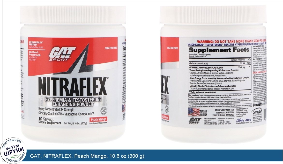 GAT, NITRAFLEX, Peach Mango, 10.6 oz (300 g)