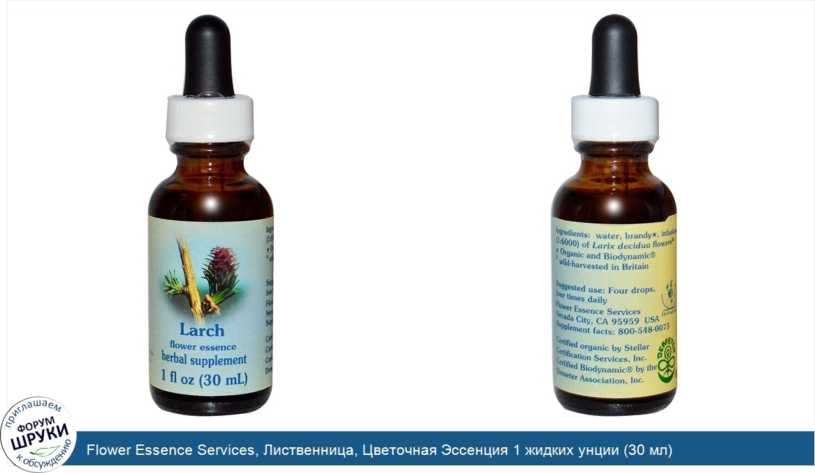 Flower Essence Services, Лиственница, Цветочная Эссенция 1 жидких унции (30 мл)