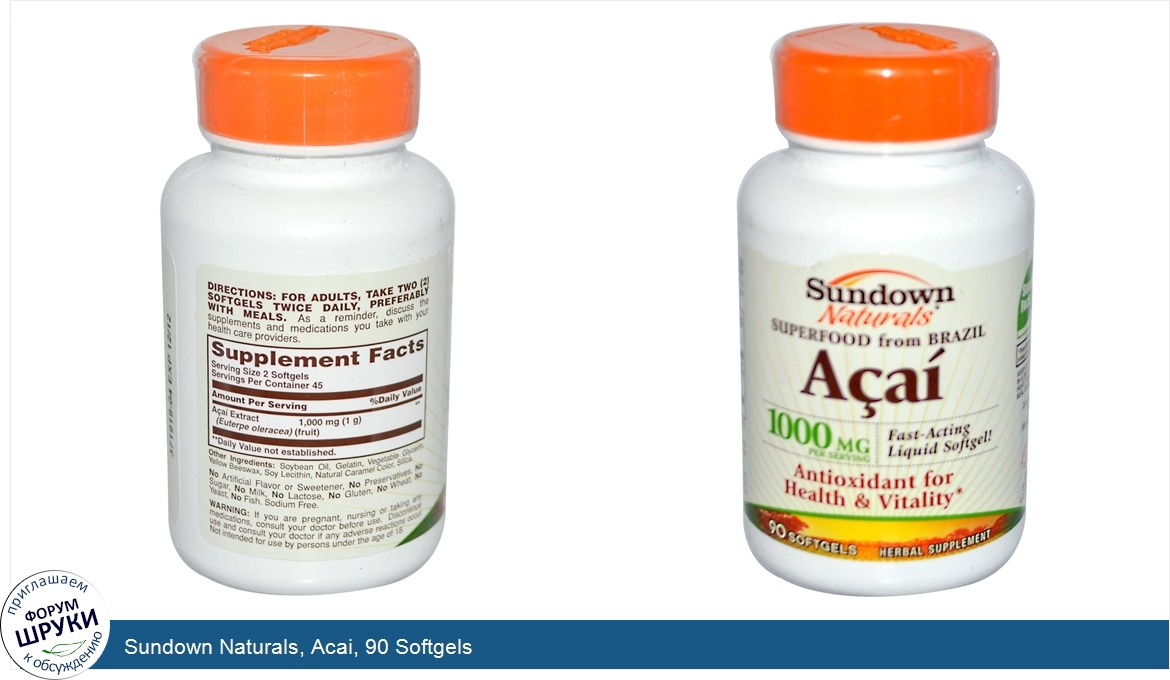 Друзья, если у вас есть отзыв/дополнение/комментарий/вопрос относительно Sundown Naturals, Acai, 90 Softgels - напишите его ответом в эту тему (это будет полезно всему сообществу в целом и вам в отдельности).