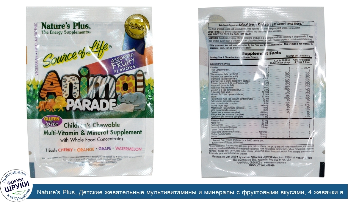 Друзья, если у вас есть отзыв/дополнение/комментарий/вопрос относительно Nature's Plus, Детские жевательные мультивитамины и минералы с фруктовыми вкусами, 4 жевачки в виде животных - напишите его ответом в эту тему (это будет полезно всему сообществу в целом и вам в отдельности).