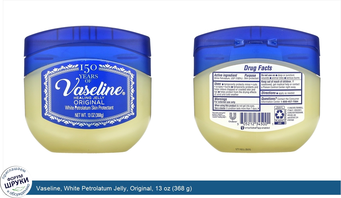 Друзья, если у вас есть отзыв/дополнение/комментарий/вопрос относительно Vaseline, White Petrolatum Jelly, Original, 13 oz (368 g) - напишите его ответом в эту тему (это будет полезно всему сообществу в целом и вам в отдельности).