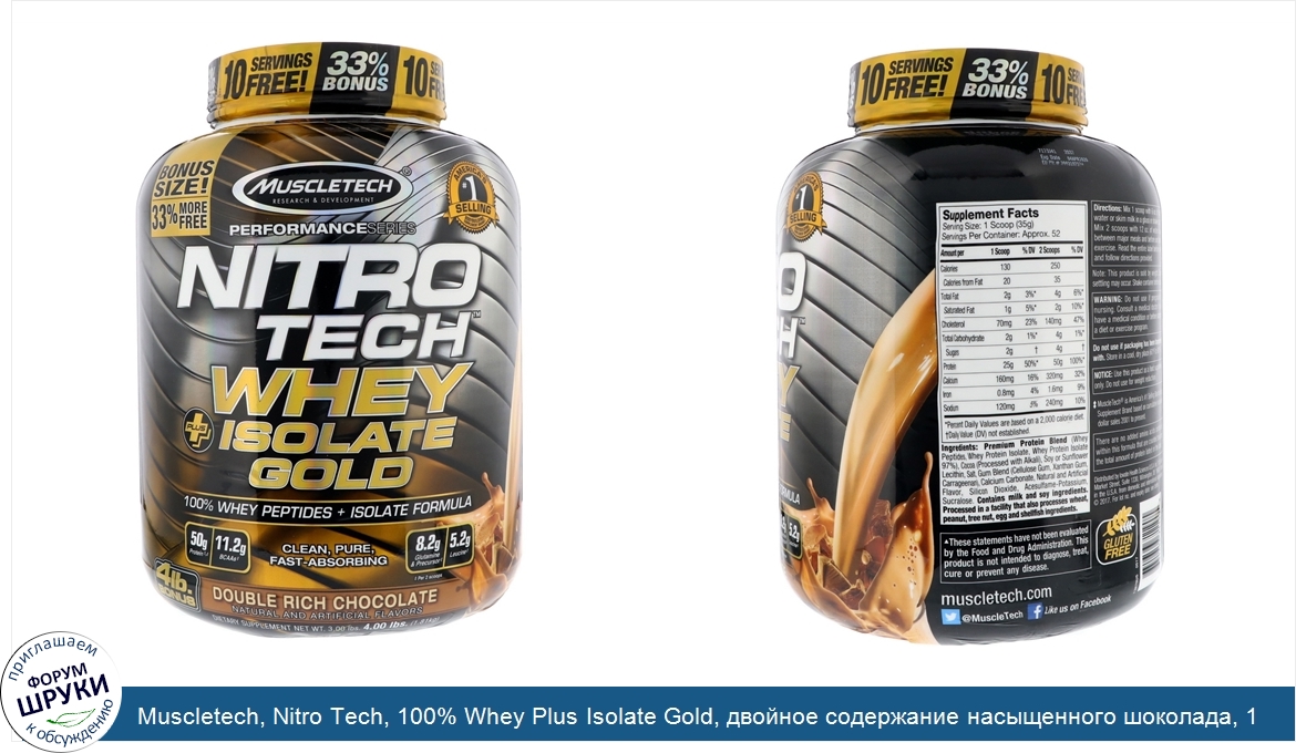 Друзья, если у вас есть отзыв/дополнение/комментарий/вопрос относительно Muscletech, Nitro Tech, 100% Whey Plus Isolate Gold, двойное содержание насыщенного шоколада, 1,81 кг - напишите его ответом в эту тему (это будет полезно всему сообществу в целом и вам в отдельности).