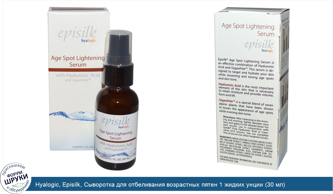 Друзья, если у вас есть отзыв/дополнение/комментарий/вопрос относительно Hyalogic, Episilk, Сыворотка для отбеливания возрастных пятен 1 жидких унции (30 мл) - напишите его ответом в эту тему (это будет полезно всему сообществу в целом и вам в отдельности).