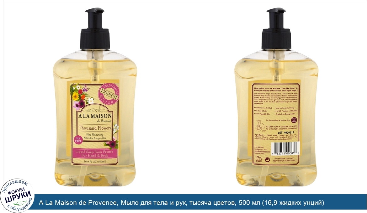 Друзья, если у вас есть отзыв/дополнение/комментарий/вопрос относительно A La Maison de Provence, Мыло для тела и рук, тысяча цветов, 500 мл (16,9 жидких унций) - напишите его ответом в эту тему (это будет полезно всему сообществу в целом и вам в отдельности).
