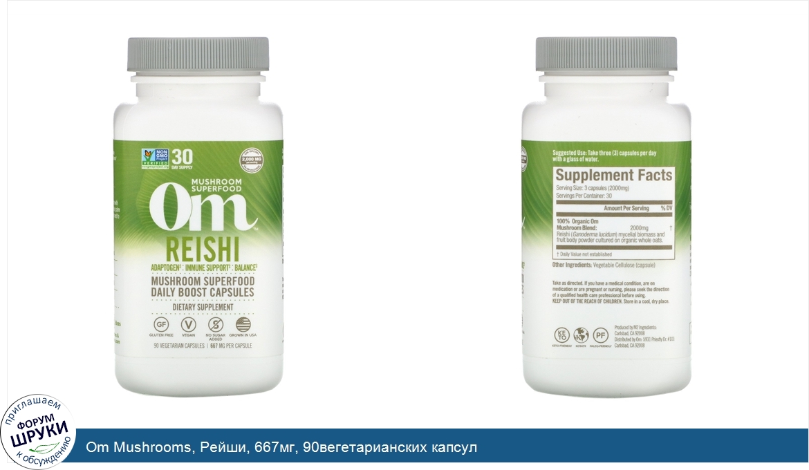 Om Mushrooms, Рейши, 667мг, 90вегетарианских капсул
