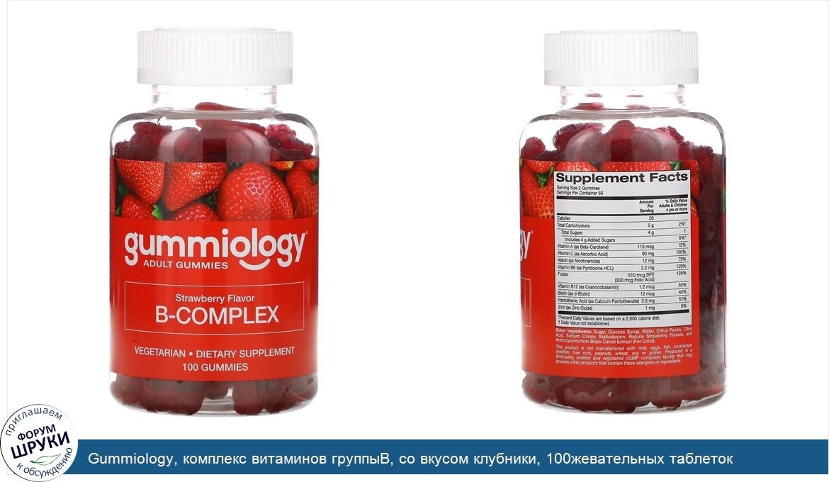 Gummiology, комплекс витаминов группыВ, со вкусом клубники, 100жевательных таблеток